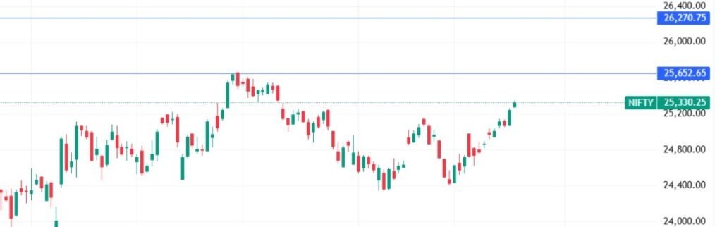 अब निचले पक्ष पर 25000 सूचकांक के लिए नया समर्थन है।